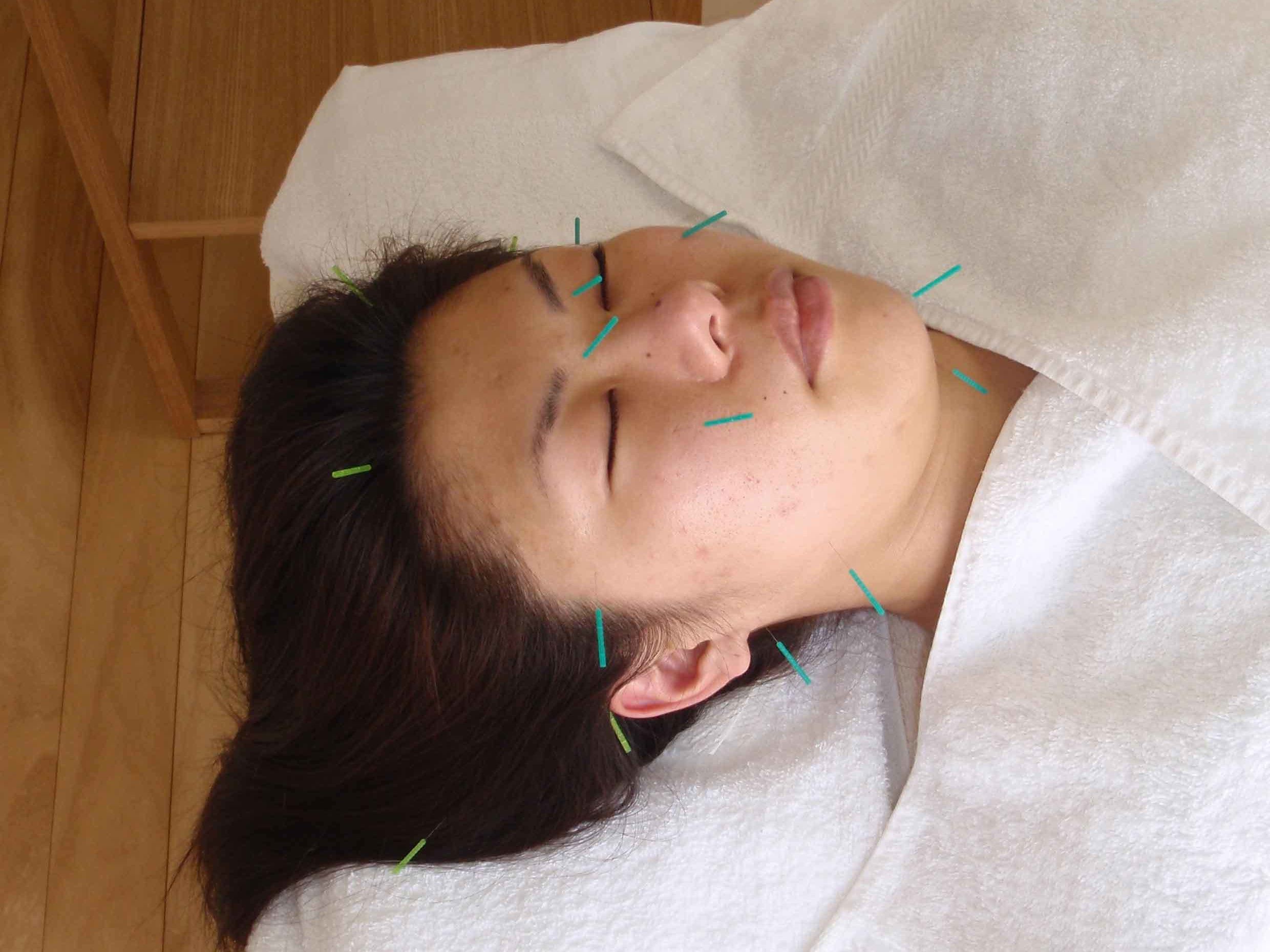 鍼と灸を全身のツボに用いて、血の巡りを良くし代謝をアップさせ、肌の弾力・むくみ・くすみ・小じわ・フェイスラインを改善していきます。